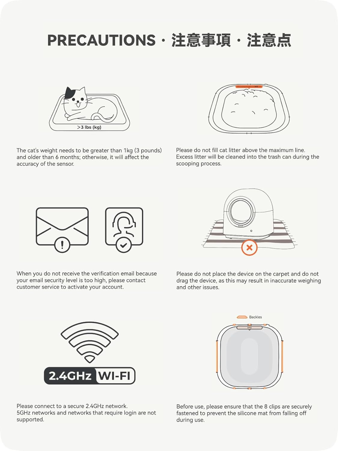 Sicherheitsdesign: Mehrere PIR-Sensoren und ein rückseitiger Abfallbehälter verhindern Unfälle und gewährleisten die Sicherheit Ihrer Katzen.