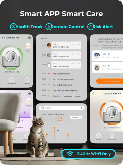 MeoWant Selbstreinigende Vollgeschlossene Katzentoilette – App-gesteuert, Sicher, Intelligent, Geruchsbeseitigend, Für Mehrere Katzen